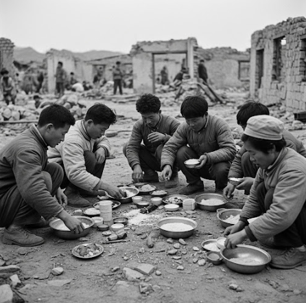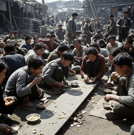 이때 사람들은 맨바닥이나 아무 나무판자 위에 음식을 쏟아놓고 허겁지겁 먹는 일이 다반사였습니다. 마치 개들이 먹이를 두고 달려들어 뒤죽박죽 먹는 모습과 같았다고 해서, 이러한 처참하고 무질서한 식사 풍경을 *'개판'*이라고 부르게 되었다는 설입니다. 밥그릇도 없이, 사람의 존엄성마저 내려놓고 먹어야 했던 당시의 절박하고 혼란스러운 상황을 단적으로 보여주는 슬픈 어원이라 할 수 있습니다.