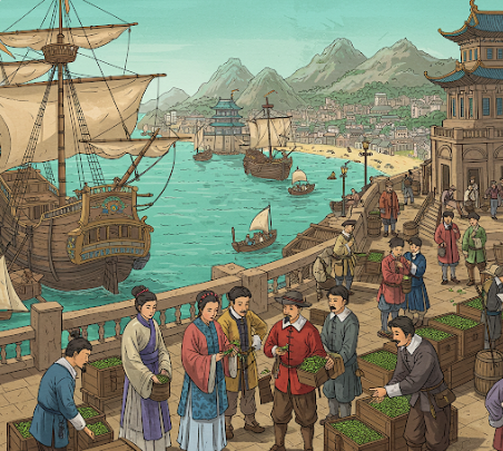 네덜란드는 동인도회사를 통해 중국과의 활발한 해상 무역을 펼쳤습니다. 당시 네덜란드 상인들은 주로 중국 복건성(福建省) 지역에서 차를 거래했는데, 이 지역에서는 차를 '테(te)'라고 발음했습니다. 이 발음이 네덜란드를 거쳐 유럽 각국으로 퍼져나가면서 영어의 '티(tea)', 프랑스어의 '테(thé)', 스페인어의 '테(té)', 독일어의 '테(Tee)' 등 'T' 발음으로 시작하는 차 이름이 정착하게 되었습니다.