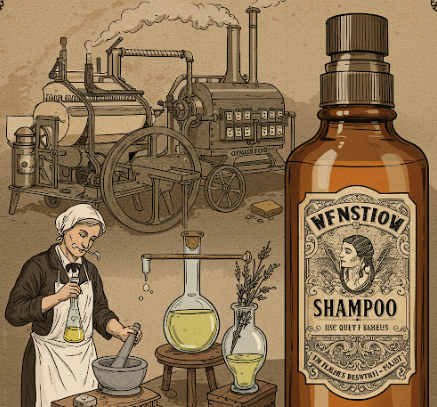 19세기 산업 혁명은 샴푸의 역사에도 큰 변화를 가져왔습니다. 화학 기술의 발전으로 인해 비누를 기반으로 한 액체 샴푸가 등장하기 시작한 것입니다. 이러한 액체 샴푸는 사용하기 편리했을 뿐만 아니라 대량 생산이 가능하여 점차 대중화되었습니다. 이 시기부터 '샴푸'는 머리를 감는 행위보다는 머리를 씻는 데 사용하는 제품 자체를 의미하는 단어로 그 의미가 점차 좁혀지기 시작했습니다.